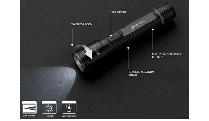 Gear X RCS Recycled aluminium USB-rechargeable torch – XD Connects