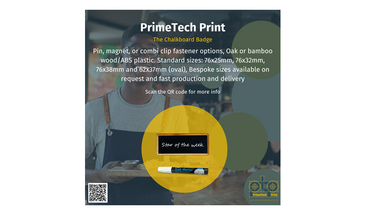 Reusable chalkboard badges are an eco-friendly solution, as they are made of either oak wood or bamboo, and can be used many times.